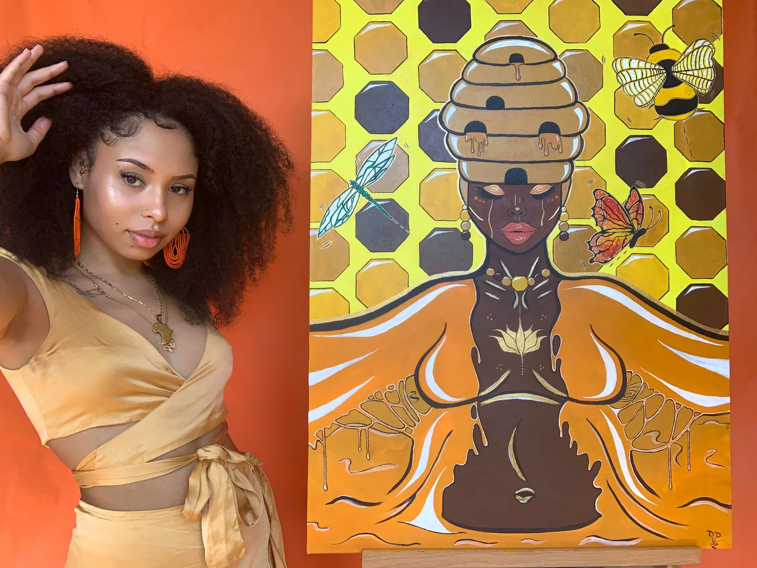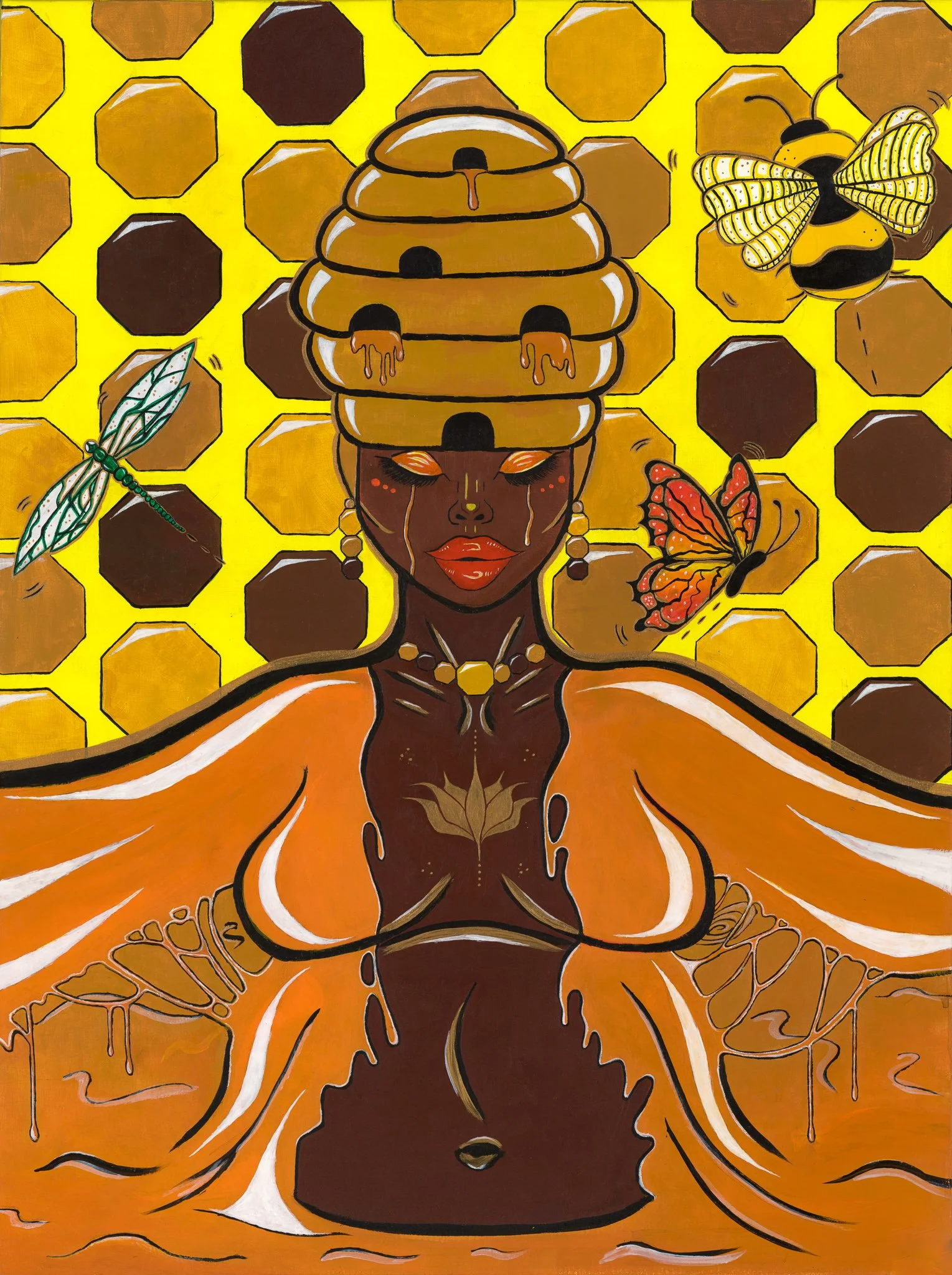 Badu & her Bee Acrylic paint on canvas.Inspired by the song “Honey” by Erykah Badu and it’s cover art.31” x 23” 2020