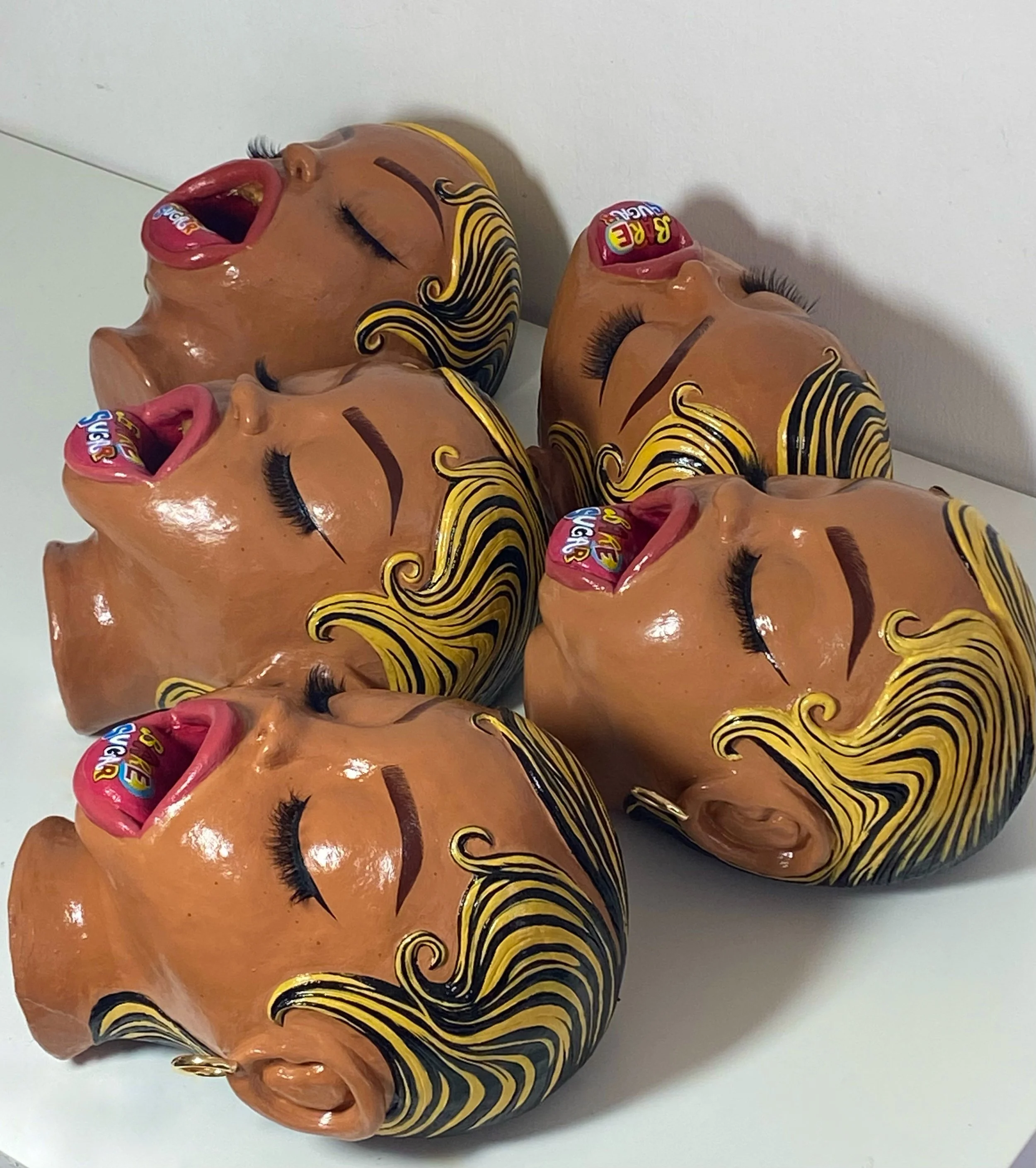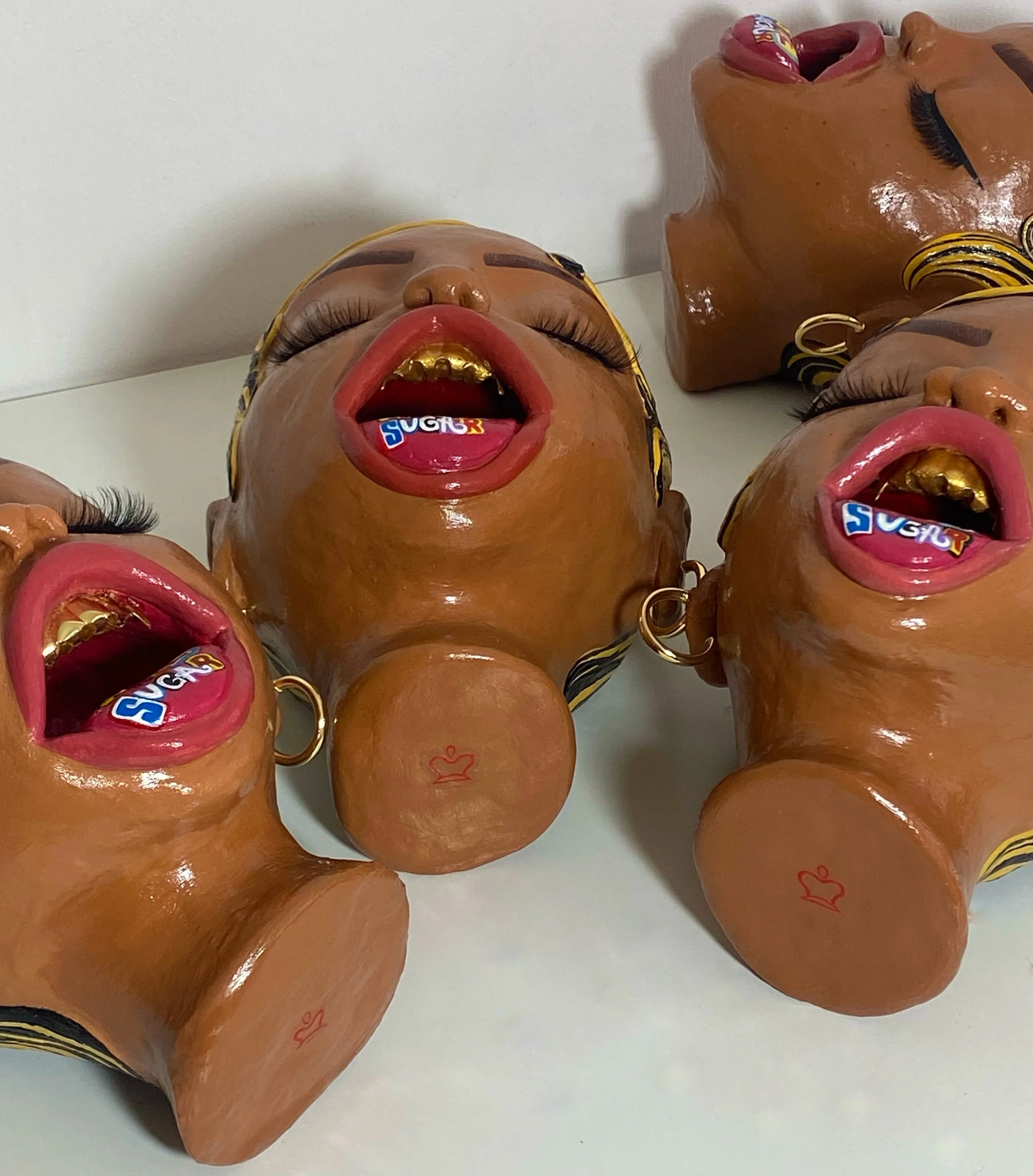 Measuring 7 inches tall, the sculptures serve not only as art pieces but also as functioning storage jars for confectionery.