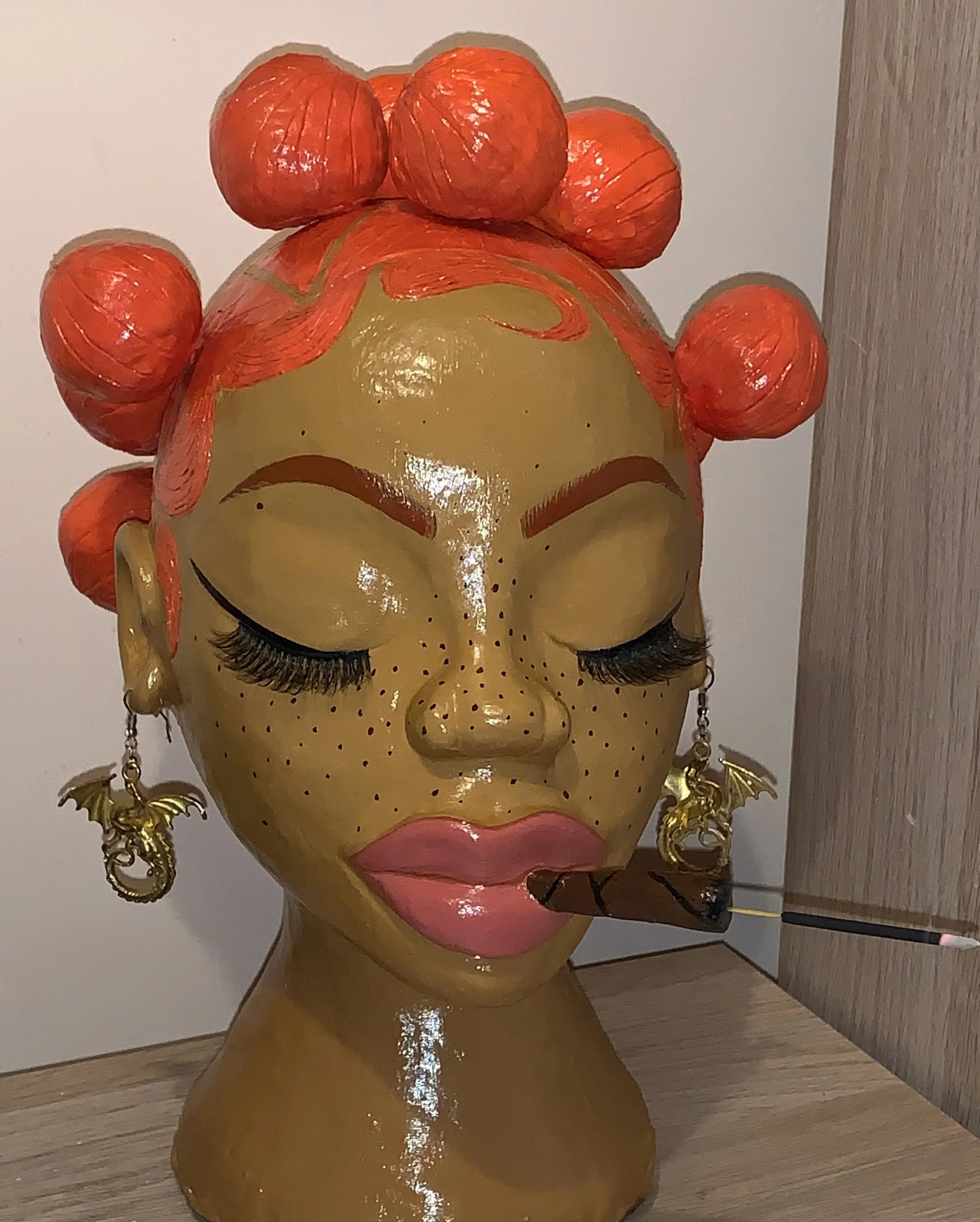 One of a kind, hand sculpted and painted piece. Incense holder.